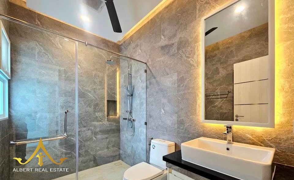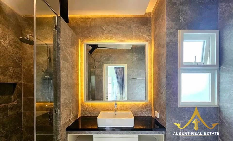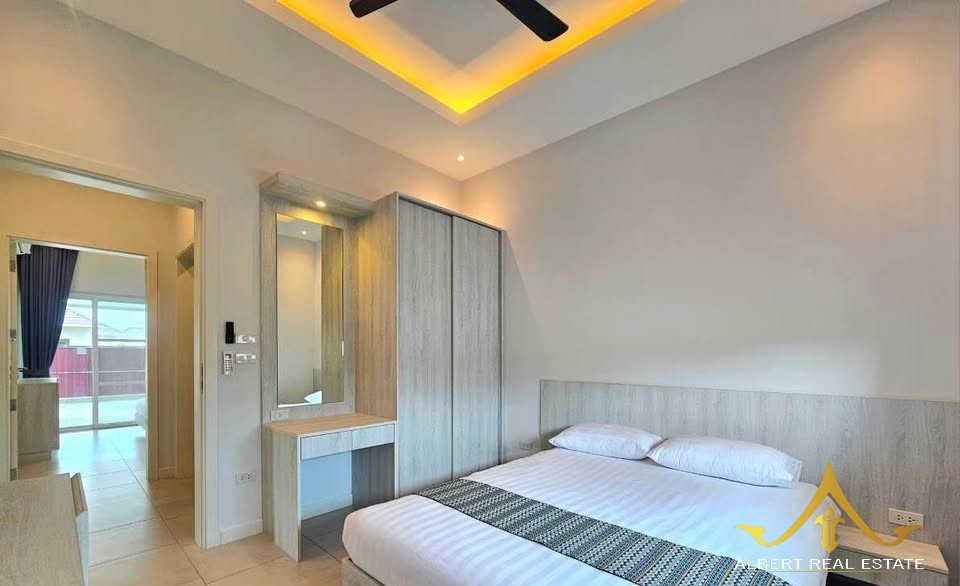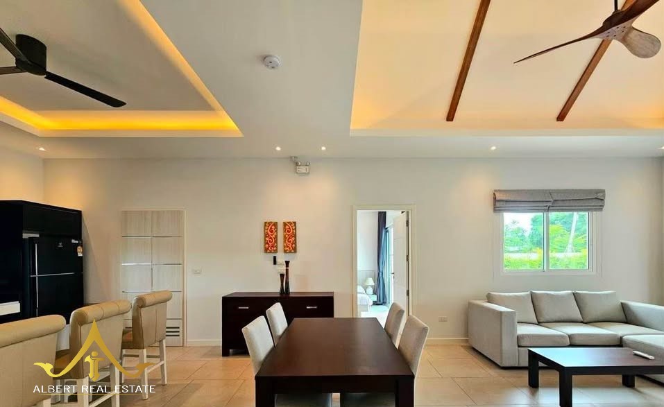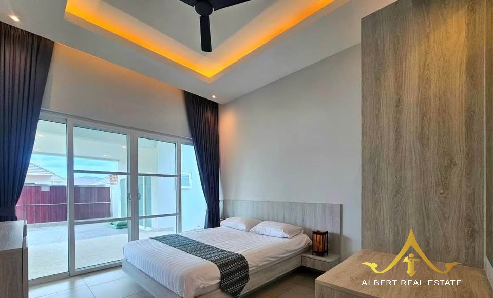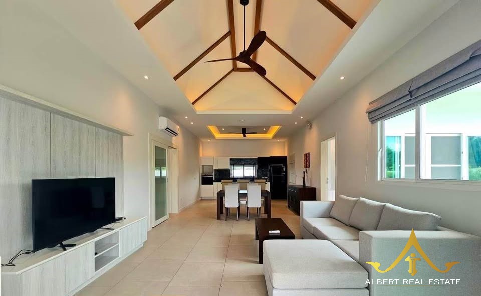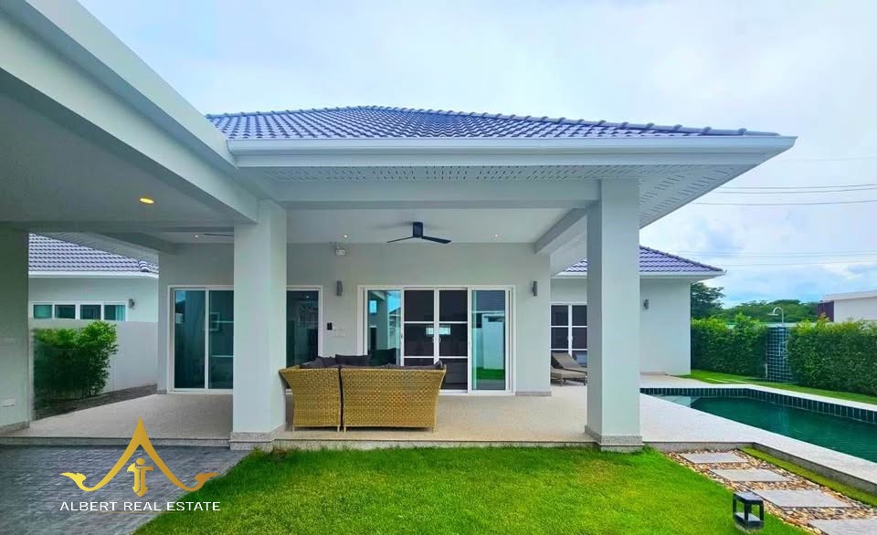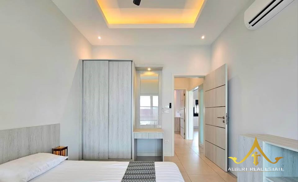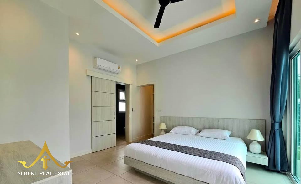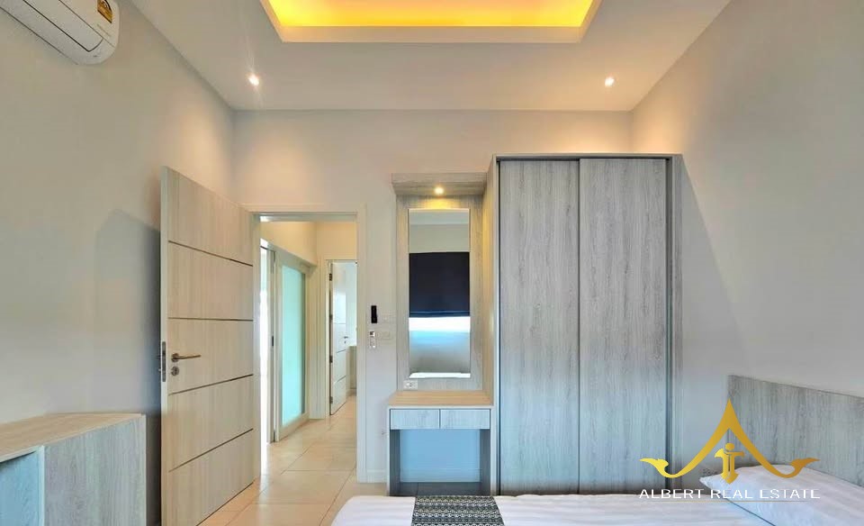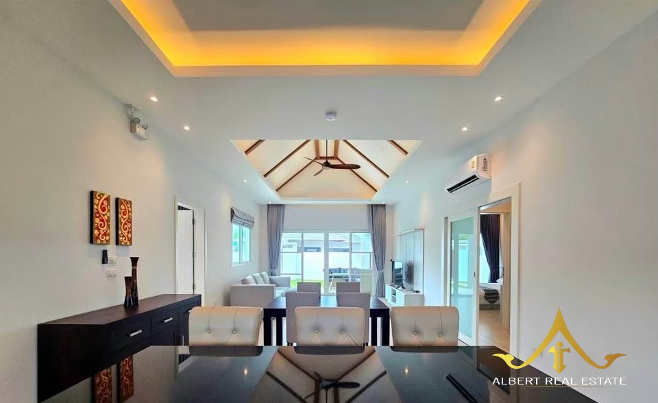Au cœur d’un havre verdoyant, cette villa moderne respire la douceur de Hua Hin. Ses espaces lumineux s’ouvrent sur un jardin tropical et une piscine tranquille, propices à la quiétude familiale. Entièrement meublée, elle marie élégance contemporaine et confort thaïlandais. À deux pas des écoles, du golf et de la ville, elle incarne un art de vivre serein sous le soleil.